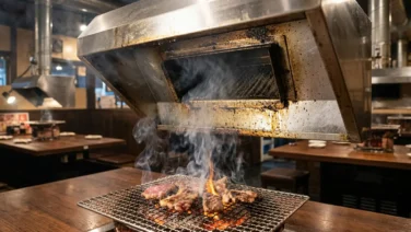 あらゆるスタイルの店舗で利用可能なカウンター設置排煙ダクト「焼鳥SKYフード」