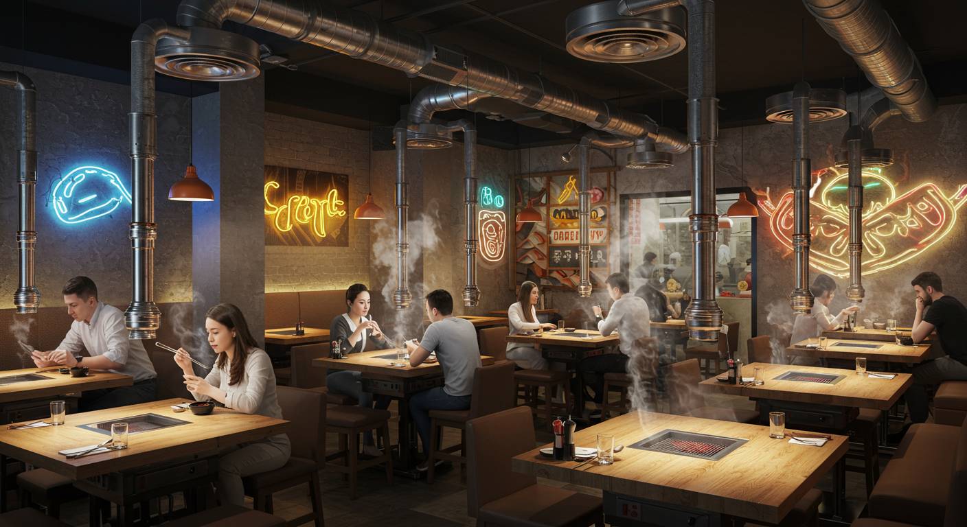 さらに、空気清浄機能を備えた空調システムの導入も進んでいます。特に焼肉店では、調理中に発生する油煙や臭いを効率よく除去することが重要です。最新の設備では、目に見えない微粒子まで捕集し、常に清潔な空気を保つことができます。