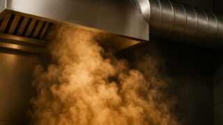 焼鳥店の厨房環境では、一般的な飲食店よりも油煙の発生量が多く、ダクト内部の汚れが早く蓄積します。代表的なトラブルには次のようなものがあります。