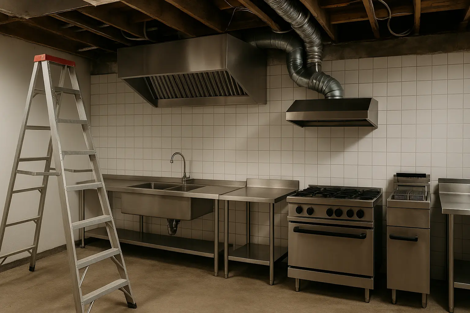 築年数の古い店舗では、現行の防火設備や排気設備に関する基準を満たしていないケースが散見されます。特に、排気ダクトの防火区画処理や、換気能力については最新の基準に適合させる必要があります。自治体や消防署によって解釈が異なる場合もあるため、計画段階での事前協議が非常に重要です。 -