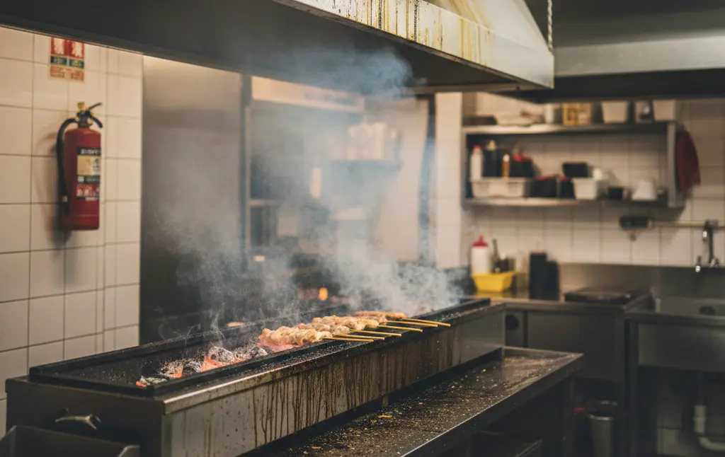 焼鳥屋の厨房では、美味しい焼鳥を提供するために、常に火を扱い、多くの油煙が発生します。この油煙への適切な対策と、それに伴う火災リスクの管理は、お客様と従業員の安全、そして店舗の安定運営にとって極めて重要です。ここでは、店舗運営者が注意すべき油煙対策と火災予防のポイントを解説します。