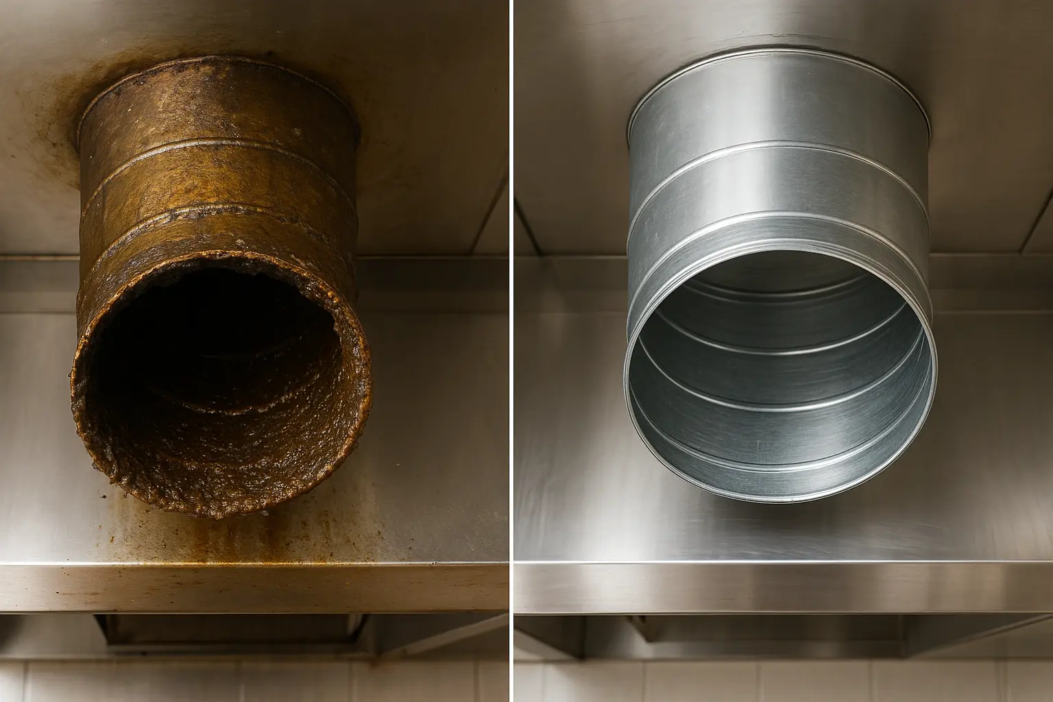 火災リスクの増大: 蓄積した油汚れは非常に引火性が高く、コンロの炎や高温の排気に触れることで、ダクト内で火災が発生するリスクが高まります。これは、お客様や従業員の安全、そして建物の保全にとって最も深刻な問題です。