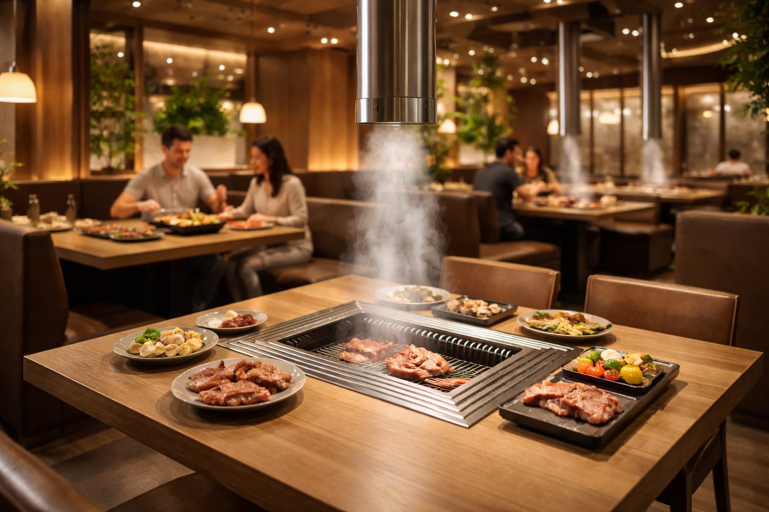 最新のダウンドラフト式排煙システムは、従来の天井設置型と比較して効率が格段に向上しています。テーブルの脇や下部から煙を吸い込むため、煙が顔に当たることなく快適に食事を楽しめます。導入店舗では「煙が気にならなくなった」という声が多く聞かれ、滞在時間の延長やデザート注文率の上昇につながっています。