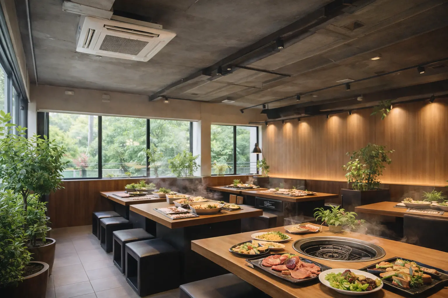 特に、煙やニオイが発生しやすい焼肉店や焼鳥店にとって、店舗の空気環境を左右する換気システムは、お客様が安心して食事を楽しめる空間づくりに直結する重要な要素です。適切な換気設備の導入は、単なる排気対策にとどまりません。最新の省エネ性能によるコスト削減やCO2排出量の削減、さらにはニオイ対策による顧客満足度の向上など、経営に具体的なメリットをもたらします。