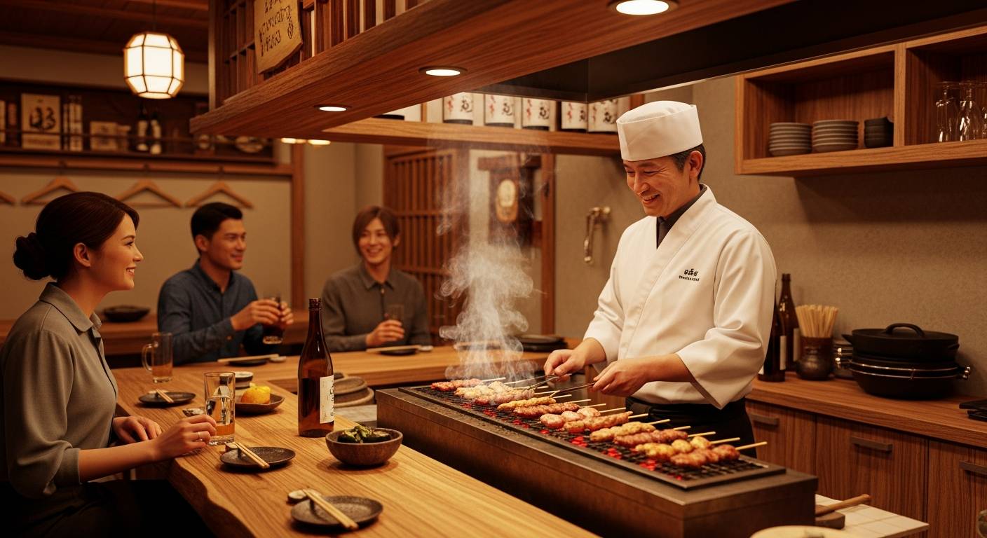 厨房設計においては、焼き台の高さをカウンター席の目線よりわずかに低く設定することで、調理の様子が見えやすくなり、圧迫感も軽減されます。焼き台周辺に清掃しやすい素材を採用し、常に清潔な状態を維持することは、プロとしての姿勢を視覚的に伝えることにも繋がります。