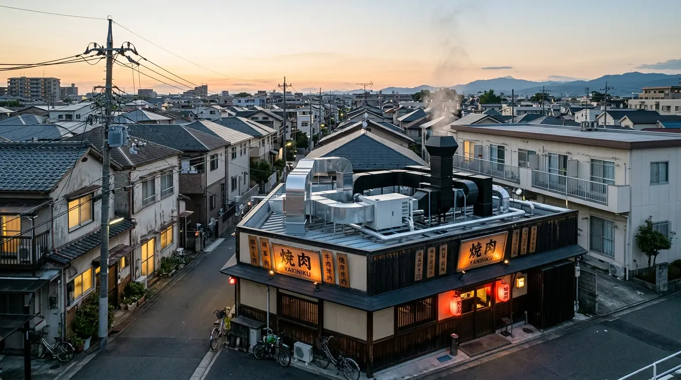 焼肉店の経営において、避けて通れない課題が調理時に発生する「煙」と「ニオイ」への対応です。これらは食欲をそそる魅力である反面、近隣住民にとっては生活環境を損なう要因となり得ます。本記事では、排気トラブルの原因から具体的な解決策、メンテナンスの重要性まで、円滑な店舗運営に欠かせない対策を解説します。