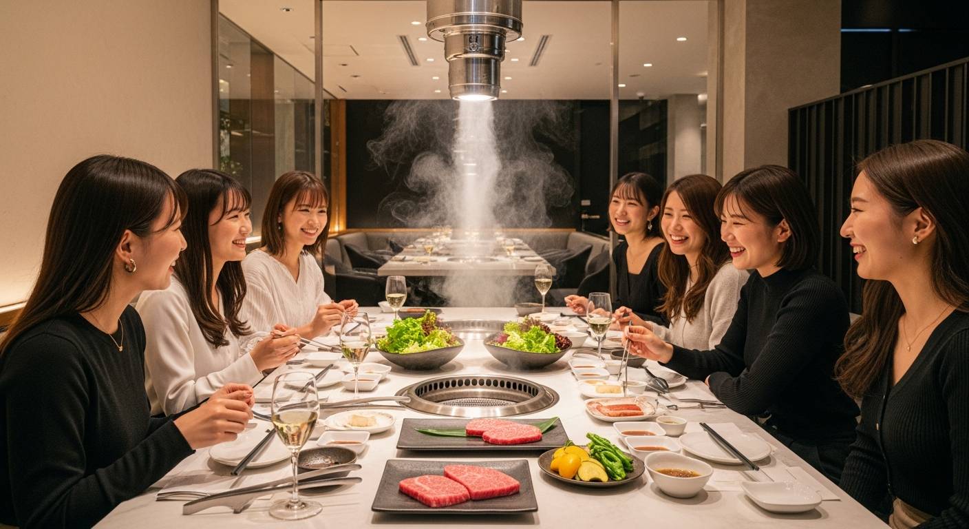 焼肉店を経営される皆様にとって、美味しいお肉を提供することはもちろんですが、店舗の空気環境を整えることも非常に重要な集客要素となっています。特に近年、焼肉店における女性客やファミリー層の獲得が売上増加の大きな鍵を握っています。しかし、多くの女性客が焼肉店への来店をためらう最大の理由は、衣服や髪の毛に染み付いてしまう特有の煙や油のにおいです。どれだけ上質なお肉を提供していても、店内に煙が充満し、ベタつきを感じる空間では、リピート来店につなげることは非常に困難になります。逆に言えば、においや煙を気にせずに心ゆくまでお肉を楽しめる清潔な空間を提供できれば、他店との強力な差別化となり、女性客を急増させることが可能になります。